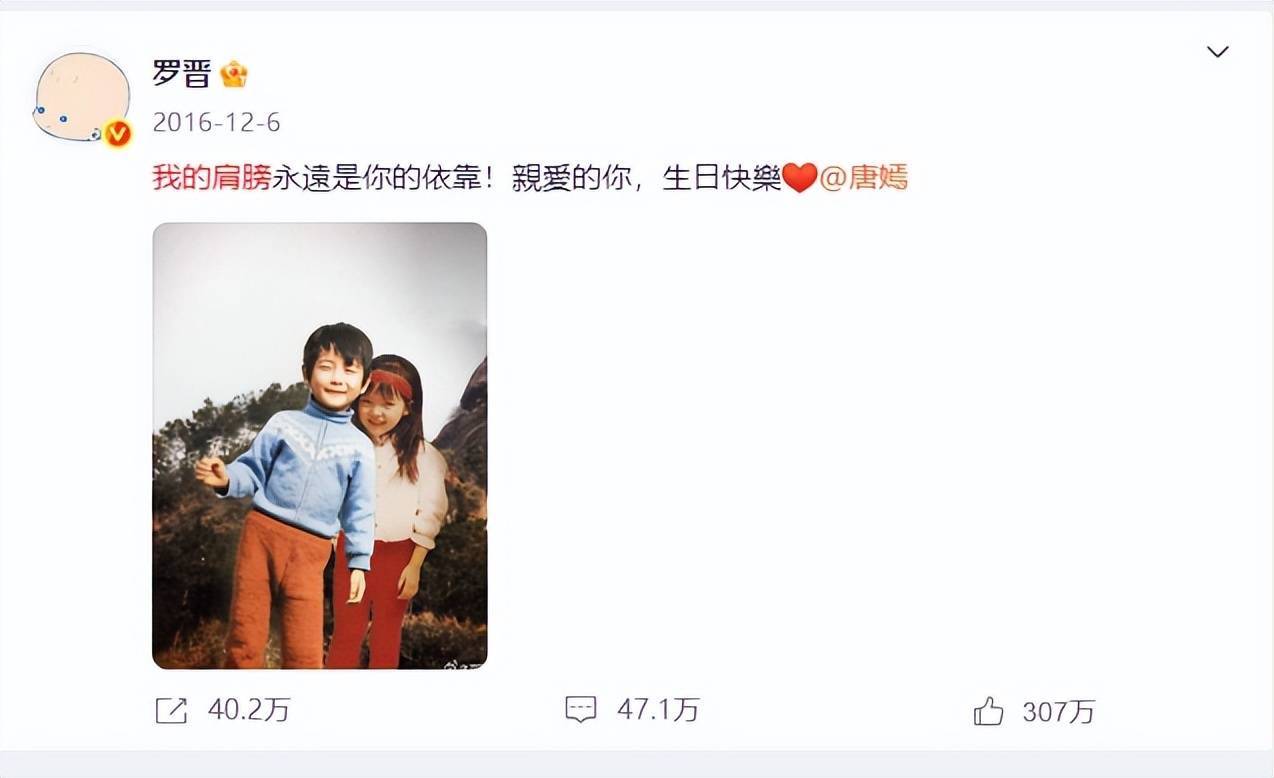 罗晋也在社交媒体上公开对唐嫣说:“我的肩膀永远是你的依靠。”