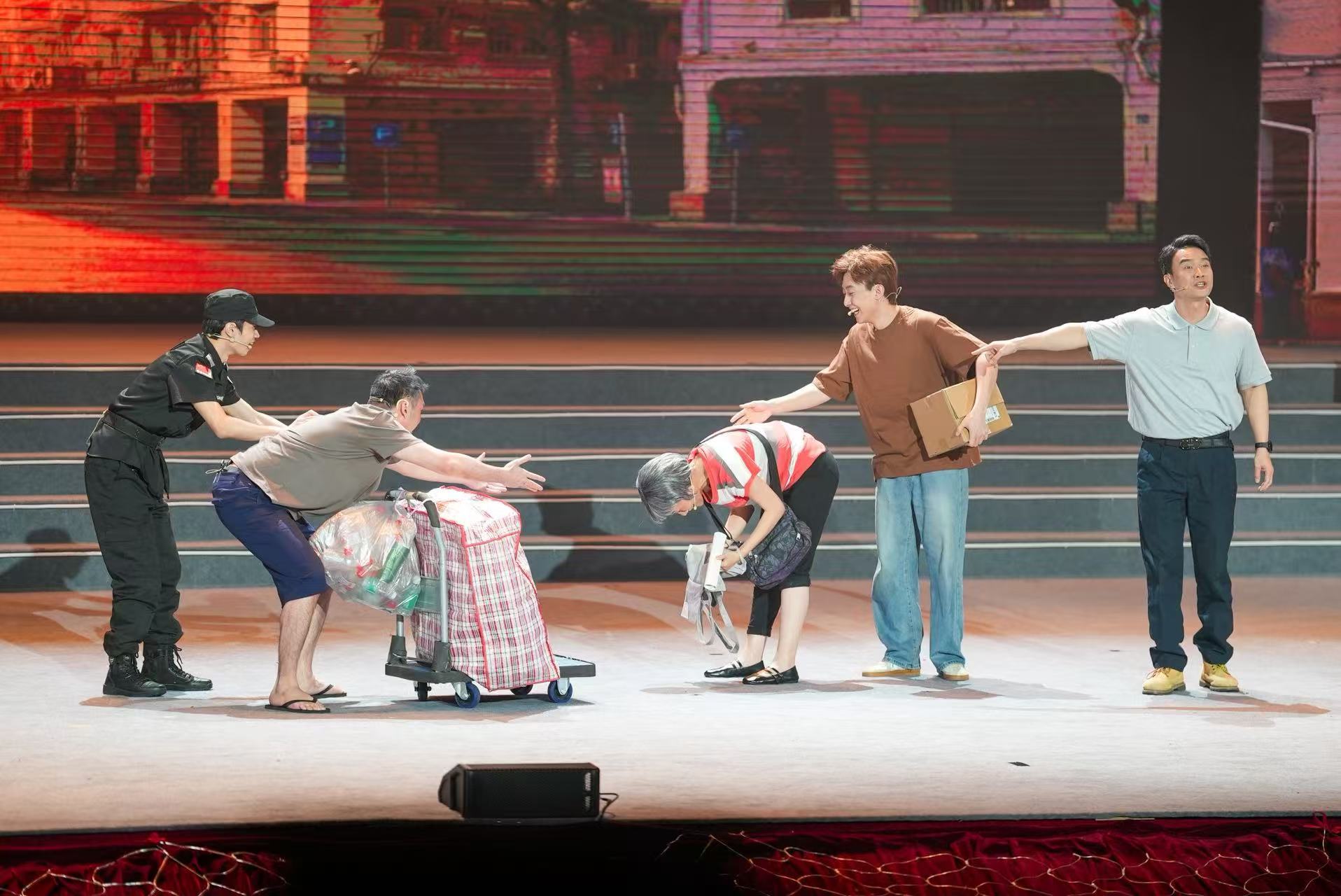 情景剧《谁的金条?》深耕广东本土 “凡人微光” 真人真事,将街头巷尾的暖心片段提炼浓缩,以舞台情景戏剧的形式全新演绎;微纪录片《平凡的重量:只为做好一件事》通过对四个真实案例的记录式拍摄,诠释城市文明的高度,不在宏大的宣言,而在千万个日常里;情景剧《雨夜铜锣》将茂名信宜的村支书刘名芳的真实事件通过情景剧的方式在舞台上重现。情景剧通过全方位氛围营造、动态灯光叙事、打破“第四堵墙”的互动,让全场共同聚焦那个惊心动魄的夜晚。
