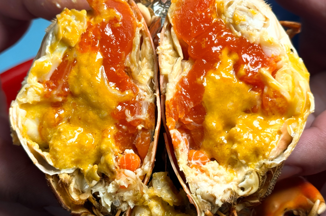 揭开蟹盖,油香扑鼻
